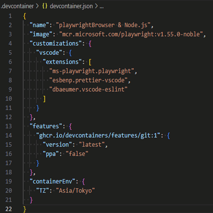 例:Dockerを使いplaywrightの環境をVSCodeのdevcontainerで作成するdevcontainer.jsonの設定をご紹介します。
