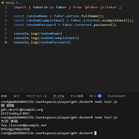 javascriptの場合はFaker.jsなどでテストデータを自動生成します。